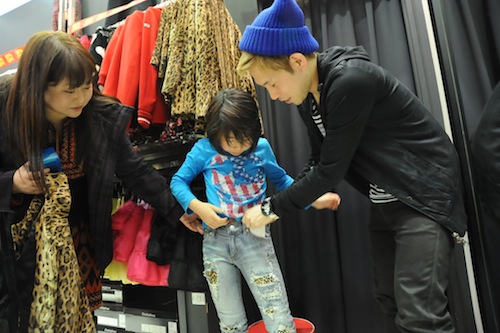 接客は、最初に子どもや親が服を選び、昂平さんはサイズ感やコーディネートについてアドバイスをするといった感じ。