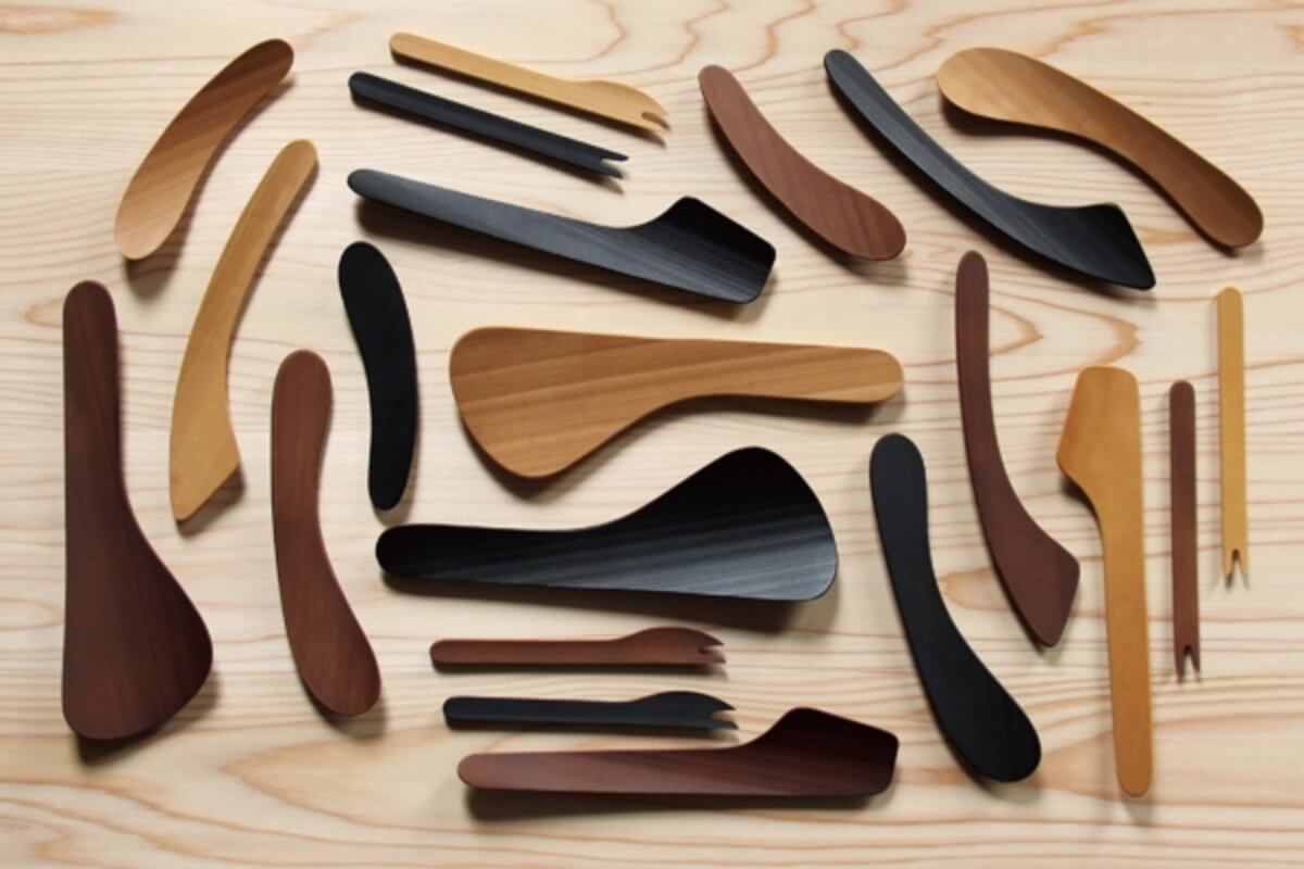 竹の曲線を生かした美しさと、手に馴染む持ち心地を併せ持った食の道具。しゃもじとして使える大きいものや、ジャムやアイスなどを掬うさじベラなど、竹道具の新しい形を生み出した。