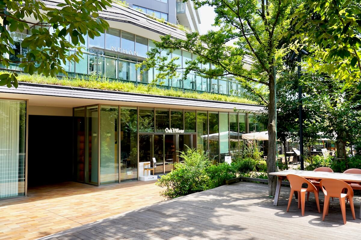 小さな森のようにナラ、ケヤキ、サクラの木々が茂り、小川が流れ、ビオトープやウッドデッキが点在。その一角にあるのが、オークヴィレッジ青山店だ。