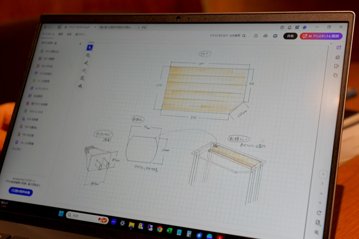 そんな丁寧なやりとりを重ね、完成した本棚の設計図を見せてくれた。何度も手描きでスケッチしたという。