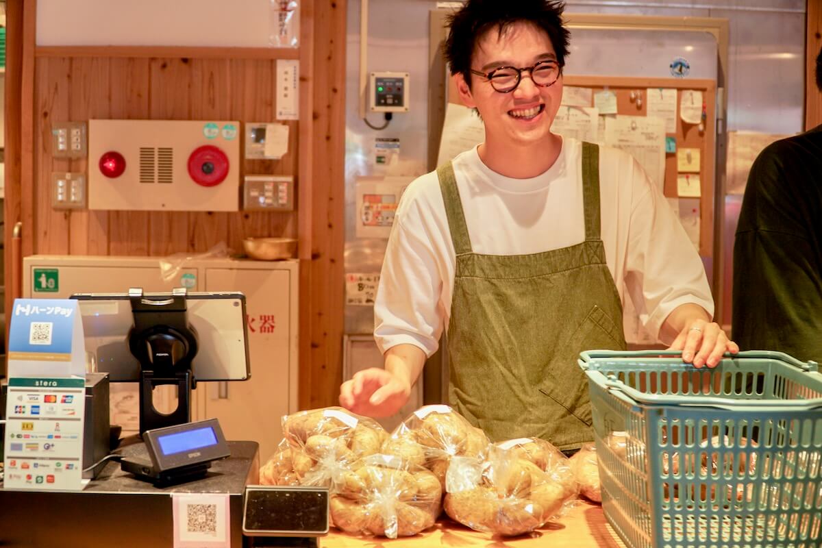 新しく入る人は、まず商店の店番からスタート。接客や発注、陳列をひとつずつ覚えていく。