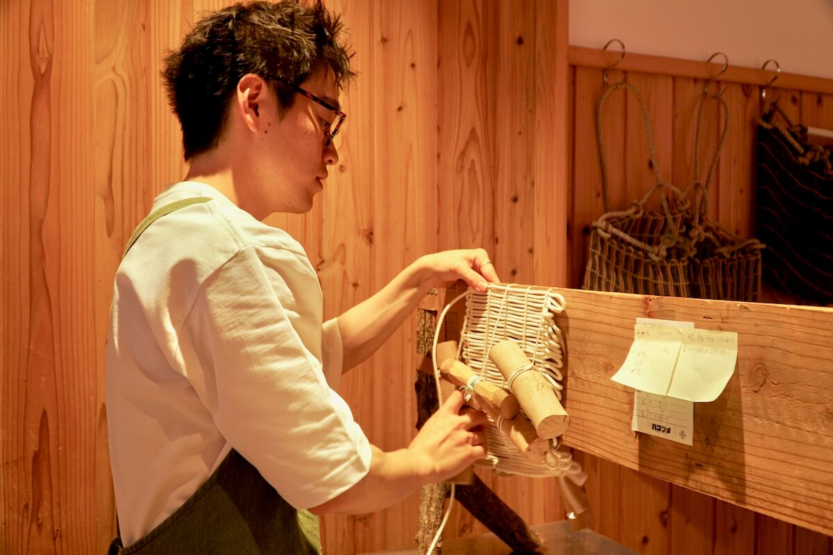 「島の方に編み方を教わり、試行錯誤しながら一つずつ手作業でつくっています」