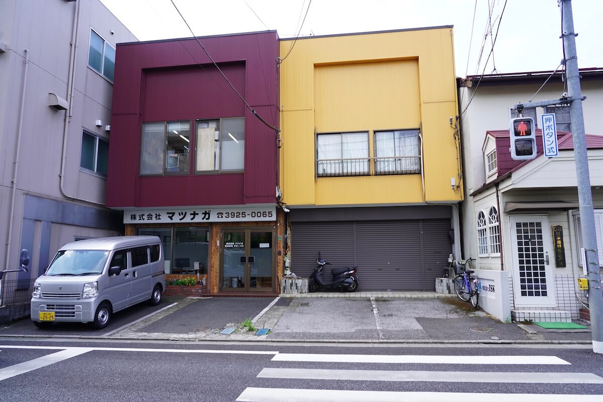 そこから歩いて15分ほどで、鮮やかな色合いの建物を見つけた。ワインレッドの建物が「マツナガ」の事務所。