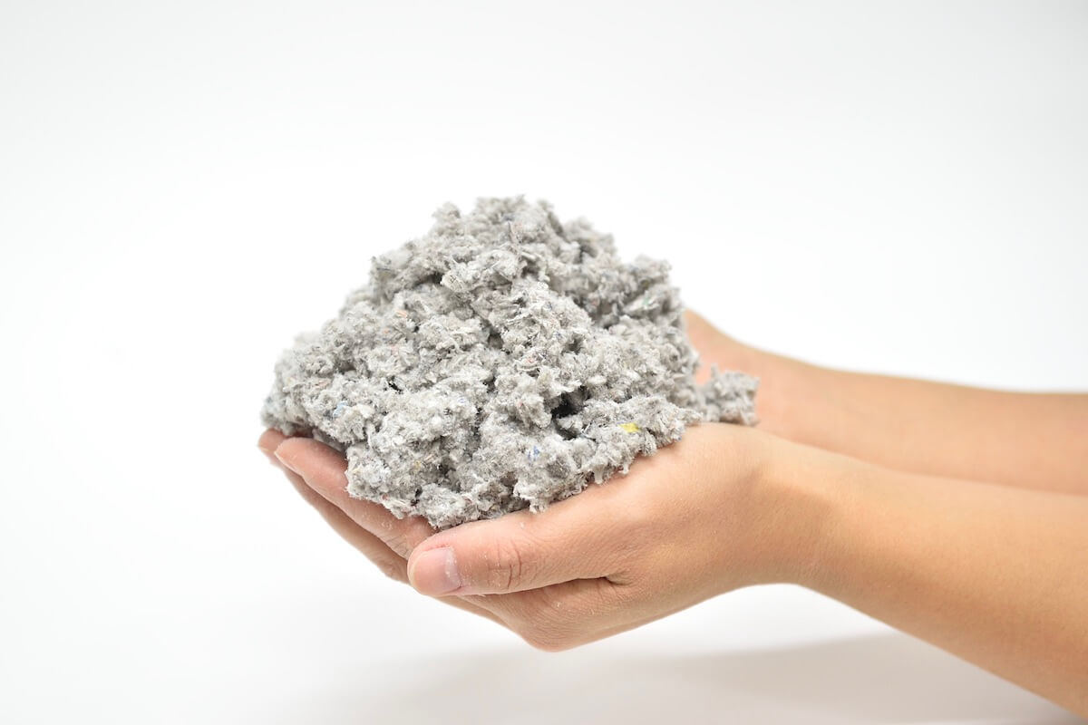 セルロースファイバーは、製造過程から環境に優しく、何度でも再利用が可能。ほかの素材よりも値段は高いけれど、断熱性だけでなく、防音性や吸放湿性にも優れています。