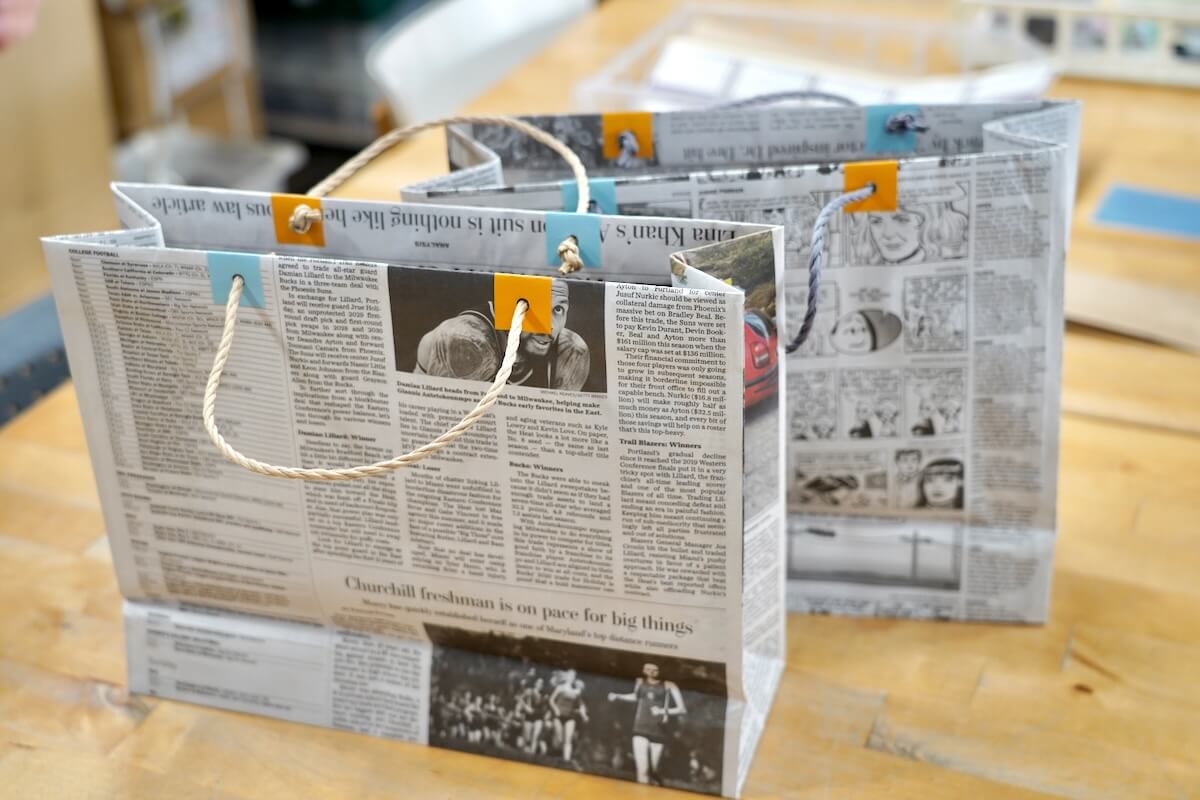 現在では内職、製菓、縫製、カフェ、弁当の5部門を運営。内職部門では英字新聞を再利用したエコバックの作成や、お菓子の梱包作業などさまざまな仕事を生み出してきた。