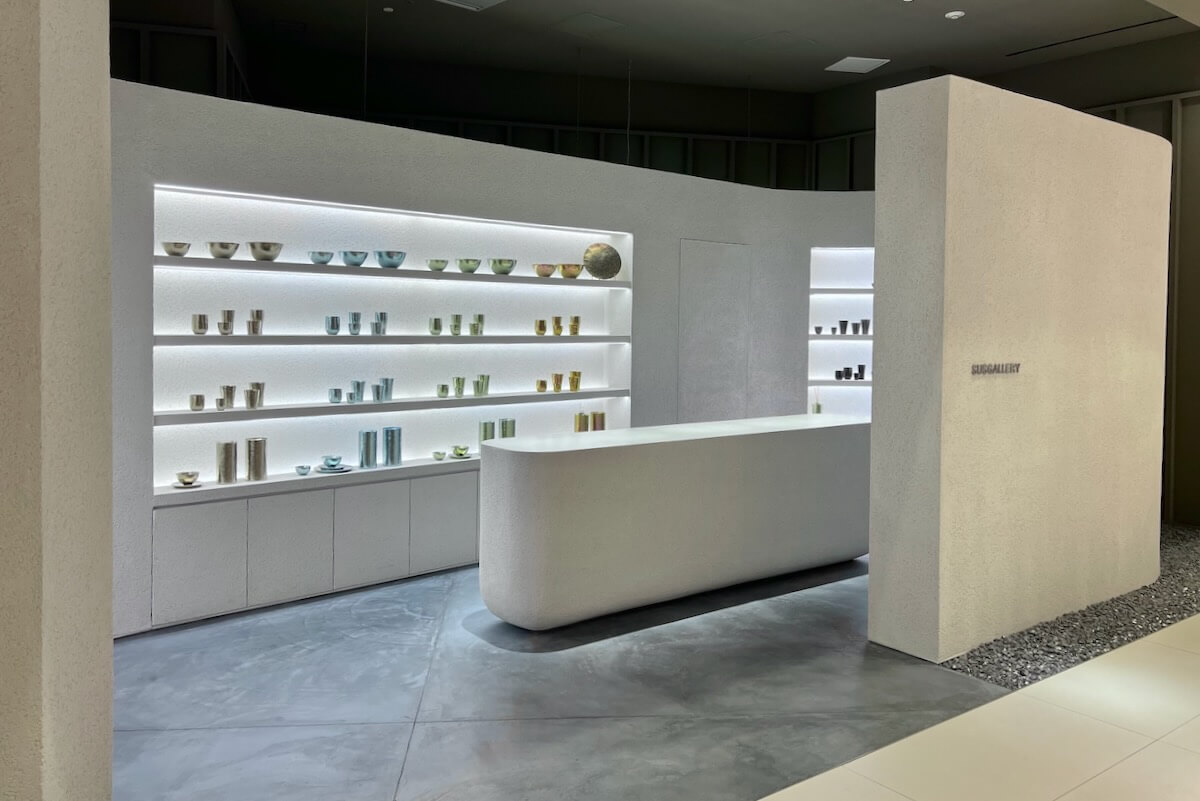 「什器の側面は左官で仕上げて、天面は特殊加工の和紙でつくられています。SUSgalleryの商品のように職人技を感じられる空間ですよ。そんなふうに洗練された場所で働けるのは気分が引き締まりますね」