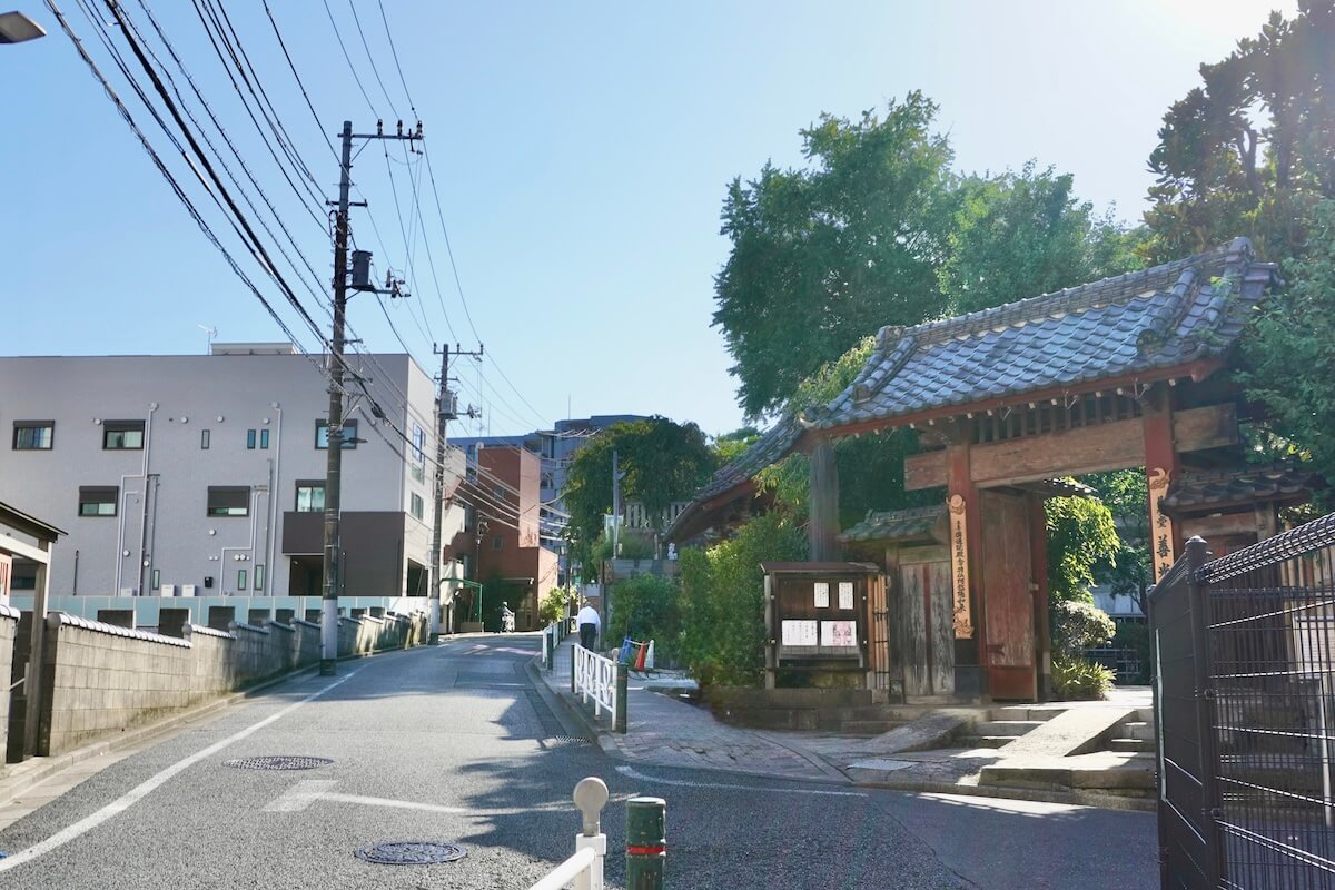 駅前の商店街を抜けて、お寺のある坂道を登っていく。