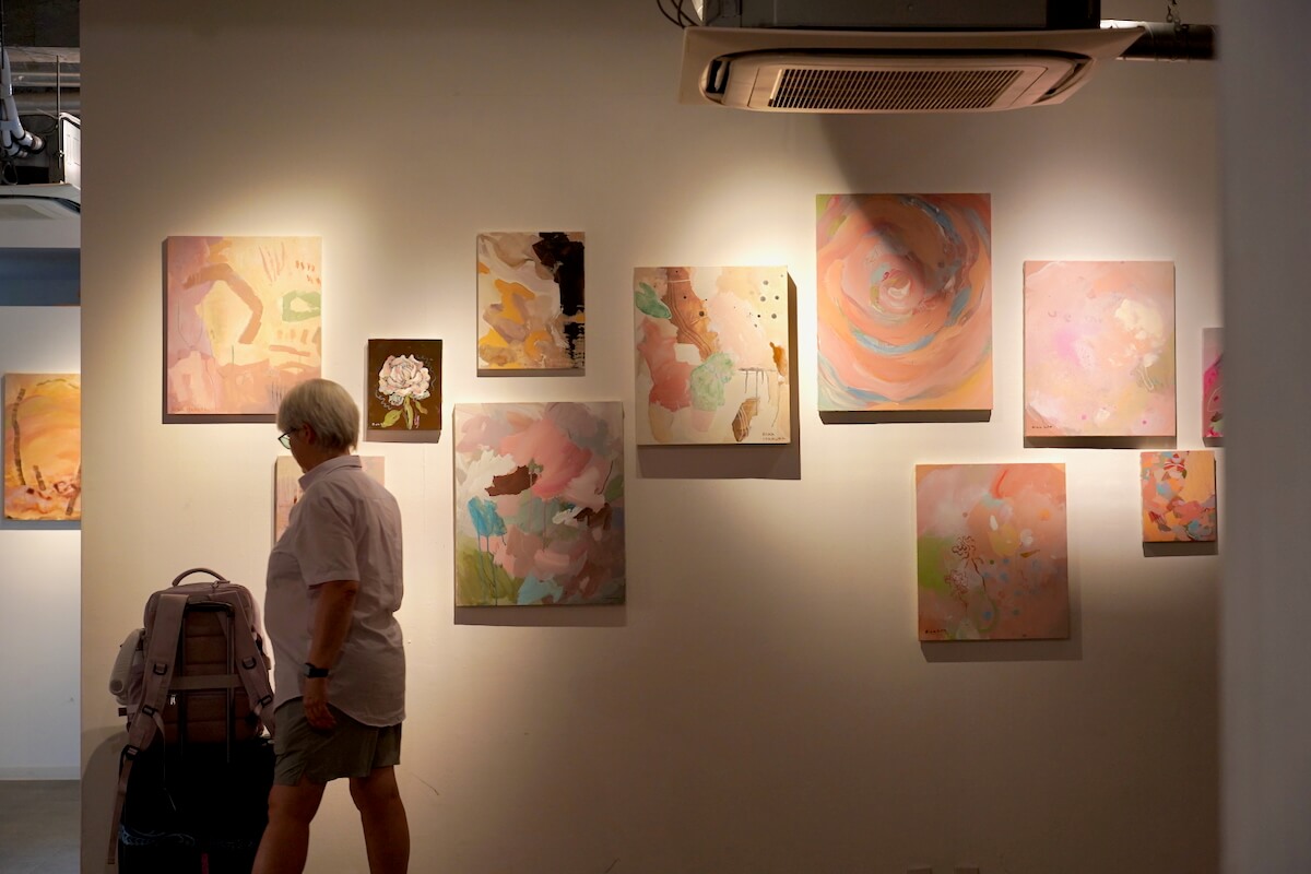 「現在展示しているアーティストさんは、もともとスタッフだったんですよ。箱根で勤務していた時期から本格的に絵をはじめて、その後展示を開催することになりました。今回で3回目の展示になります」