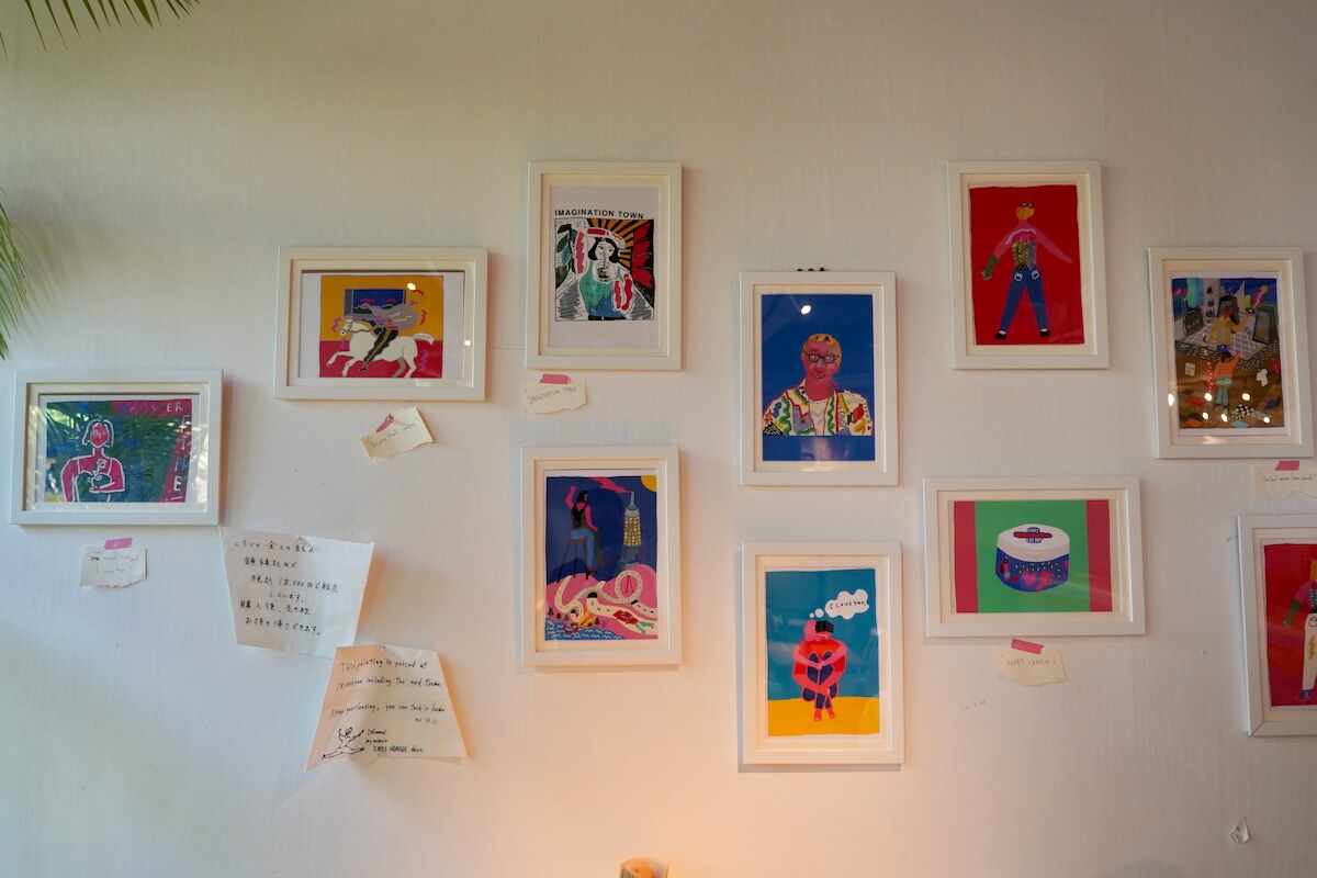 たとえば、と岩永さんが指差して教えてくれたのは、後ろの壁に掛けられたイラスト。自由というか、少し歪んだ線と、パキッとしたポップな色づかい。