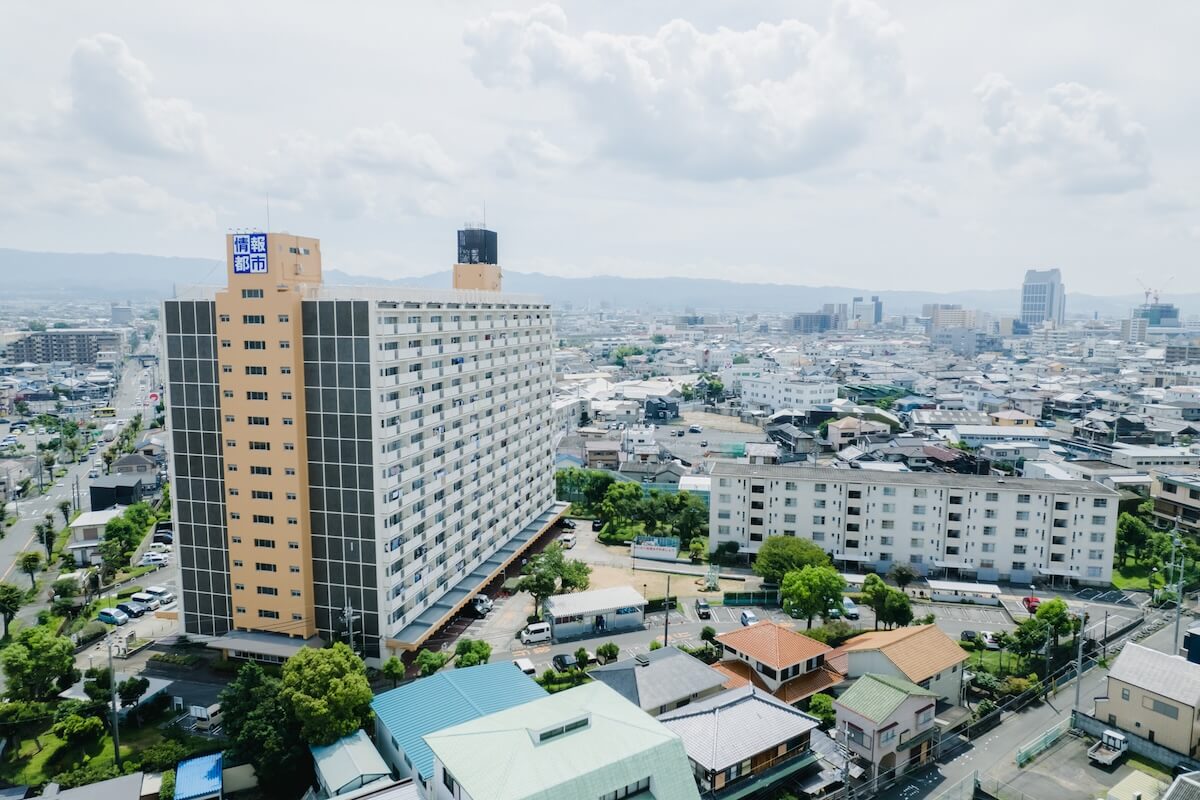 情報都市の最寄り駅は、一駅となりの井原里(いはらのさと)。
