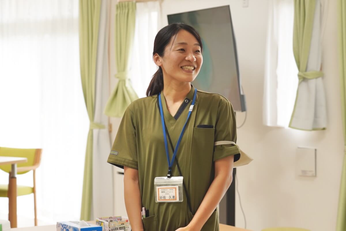 「看多機なら健康状態に合わせて、ご本人のやりたいことを実現しやすい。加えて、看護師の育成にも興味があったんです。オーナーから『岩佐さんのやりたいようにしていいよ』って言ってもらえて。それで来ることにしました」