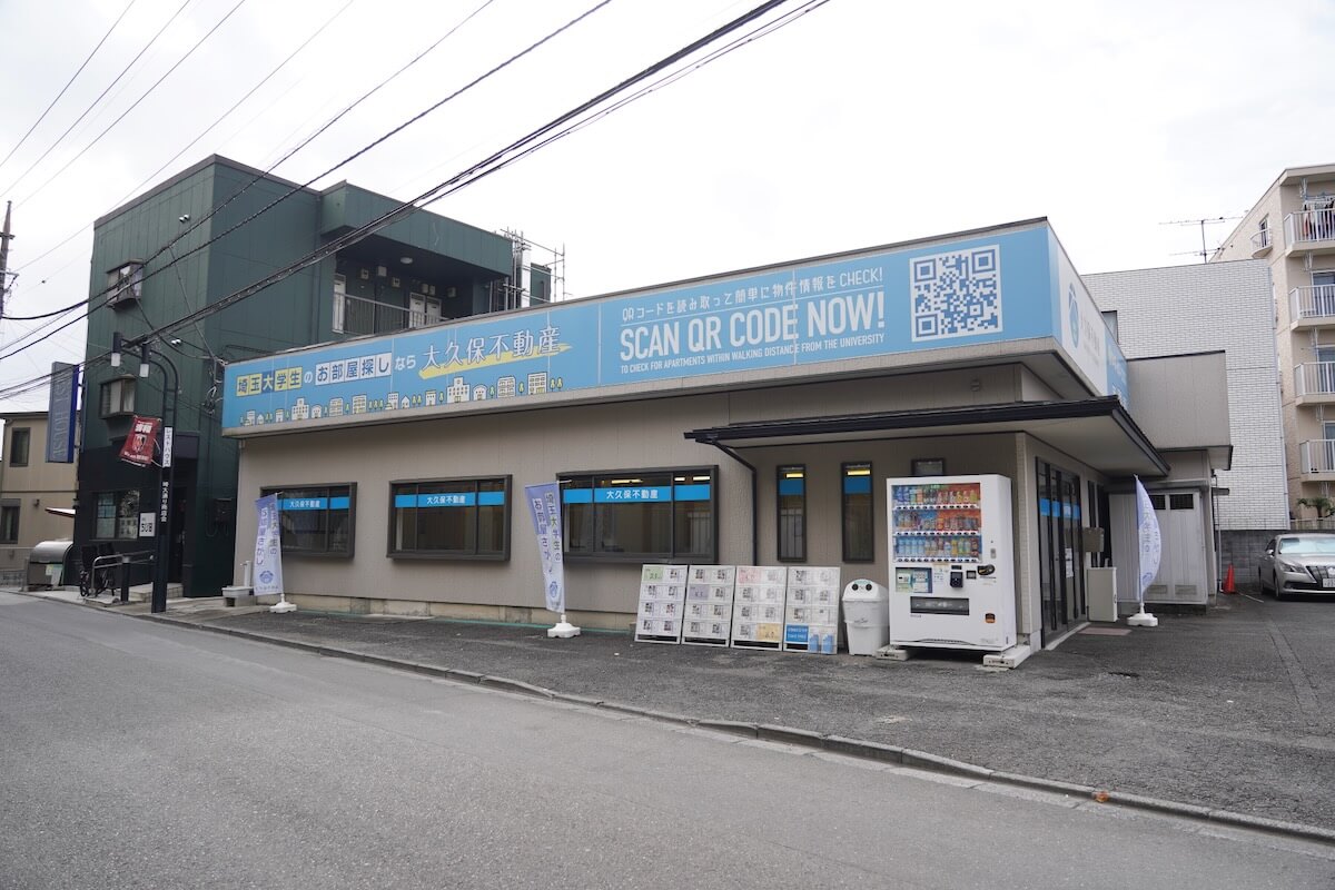 大学の構内が目の前に見える場所に、大久保不動産はある。