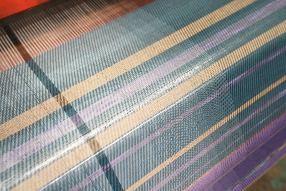 織りチームの一員として、デザインを考え、糸を選び、織機を動かして生地をつくっている。