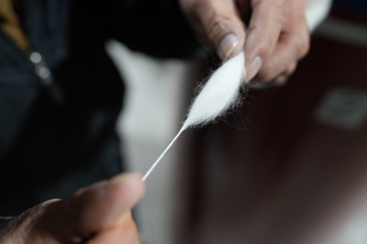 「この服を大事に思うということは、服そのものだけでなく、素材となるコットンちゃんやヒツジちゃんのことも大事に思うということ。愛情、きもちが入っているというか。アルパカってこんなに人見知りなんだとか、アンゴラはベタベタしてくる子とそうでない子がはっきりしているとか」
