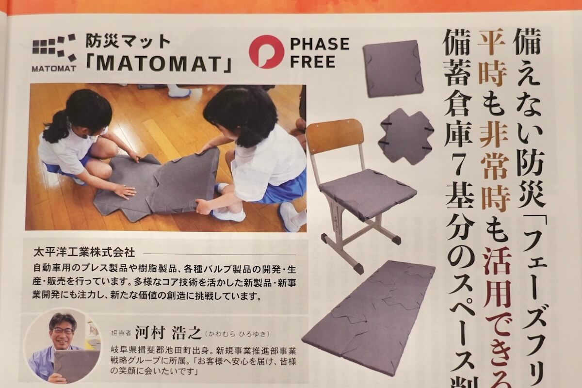 たとえばと教えてくれたのが、自動車部品の製造過程で生まれる端材を活用した、防災マット。