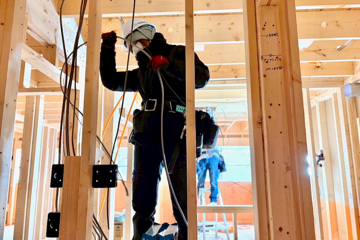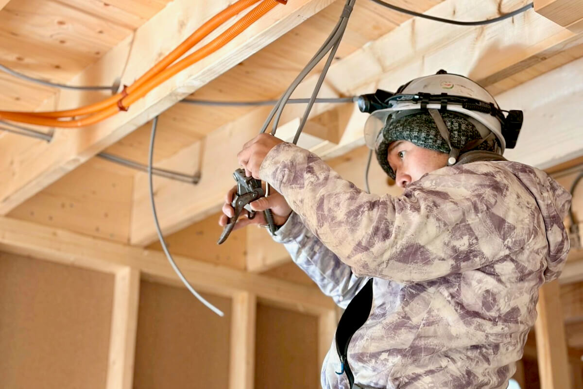 「図面という平面で見ていたものが、現場で立体になっていると感動しますね。今まで、壁の裏側なんて見たことなかったので。でも、配線の仕組みがわかると、家の中ってこうなっていたんだ!って」