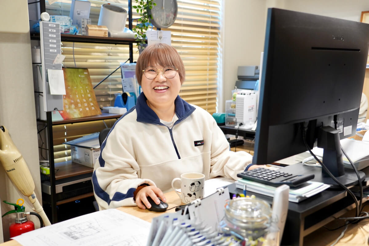 「社内がね、明るくなりましたよ。うちの職人さんたちも、現場の雰囲気も良くなったって。女性が珍しいので、重宝していただいているみたいです」