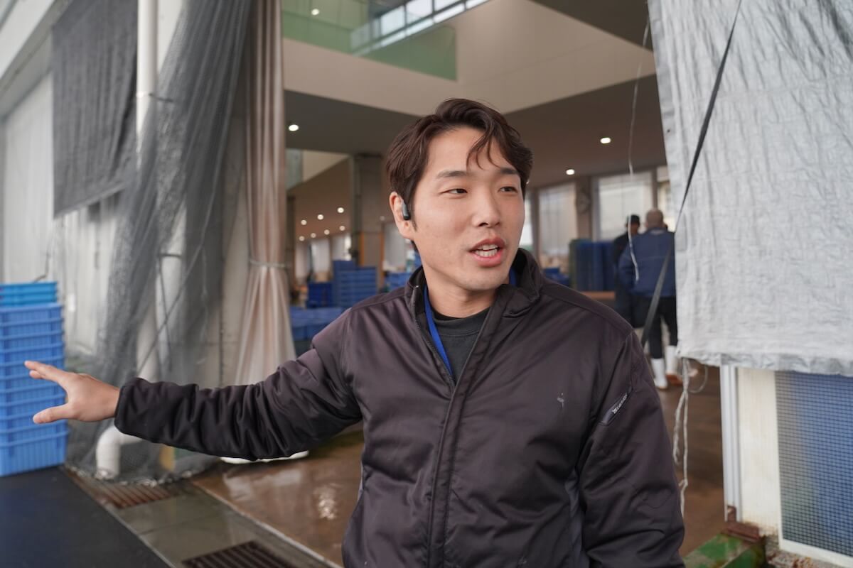先ほど、魚市場で競り人をしていたのが笹岡さん。12年前に須崎市にある漁業組合に入社。サカナ本舗に魚を卸していて、新しい旅館の料理で使う魚も卸してくれるそう。
