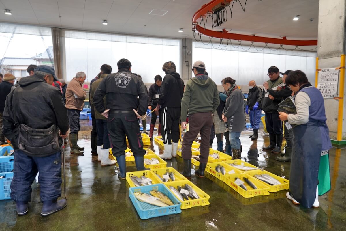 時刻は朝の9時半。市場に続々と魚が揚げられていく。