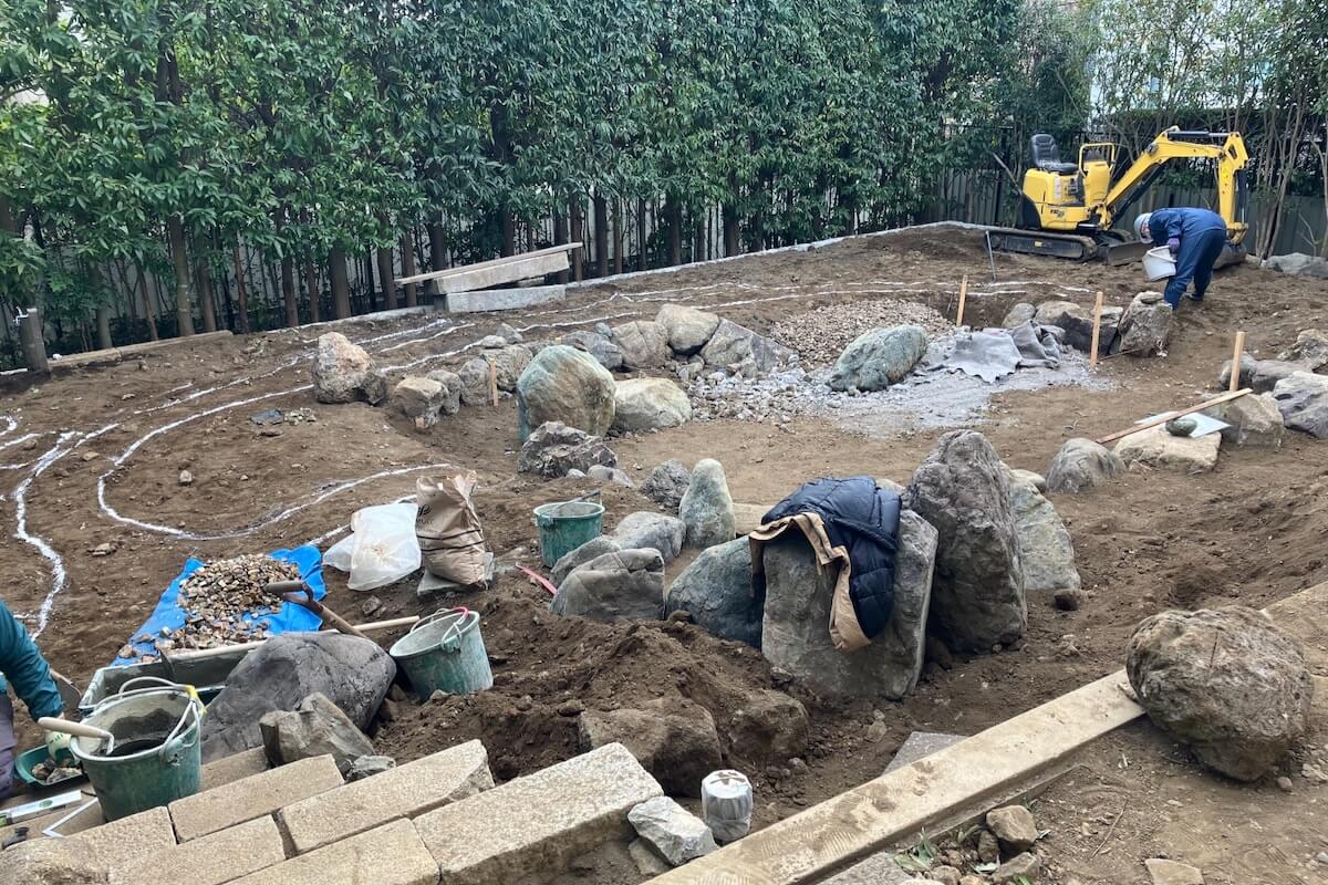 「左官や石積みとか、外注に頼むような仕事もほとんど自分たちで手がけるんです。そうすることでお客さんの声も細かいところまで反映しやすいですし、庭の調和がとれる」