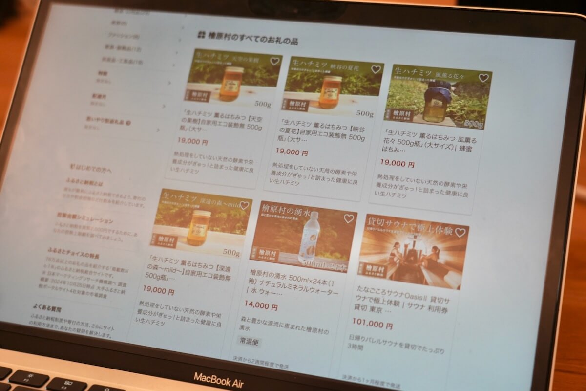 檜原村の寄付金額は、2023年度の約235万円から、さとゆめが関わりはじめて2年目の2025年度は、約800万円の見通し。返礼品の数は40個ほどから90個以上に増えている。