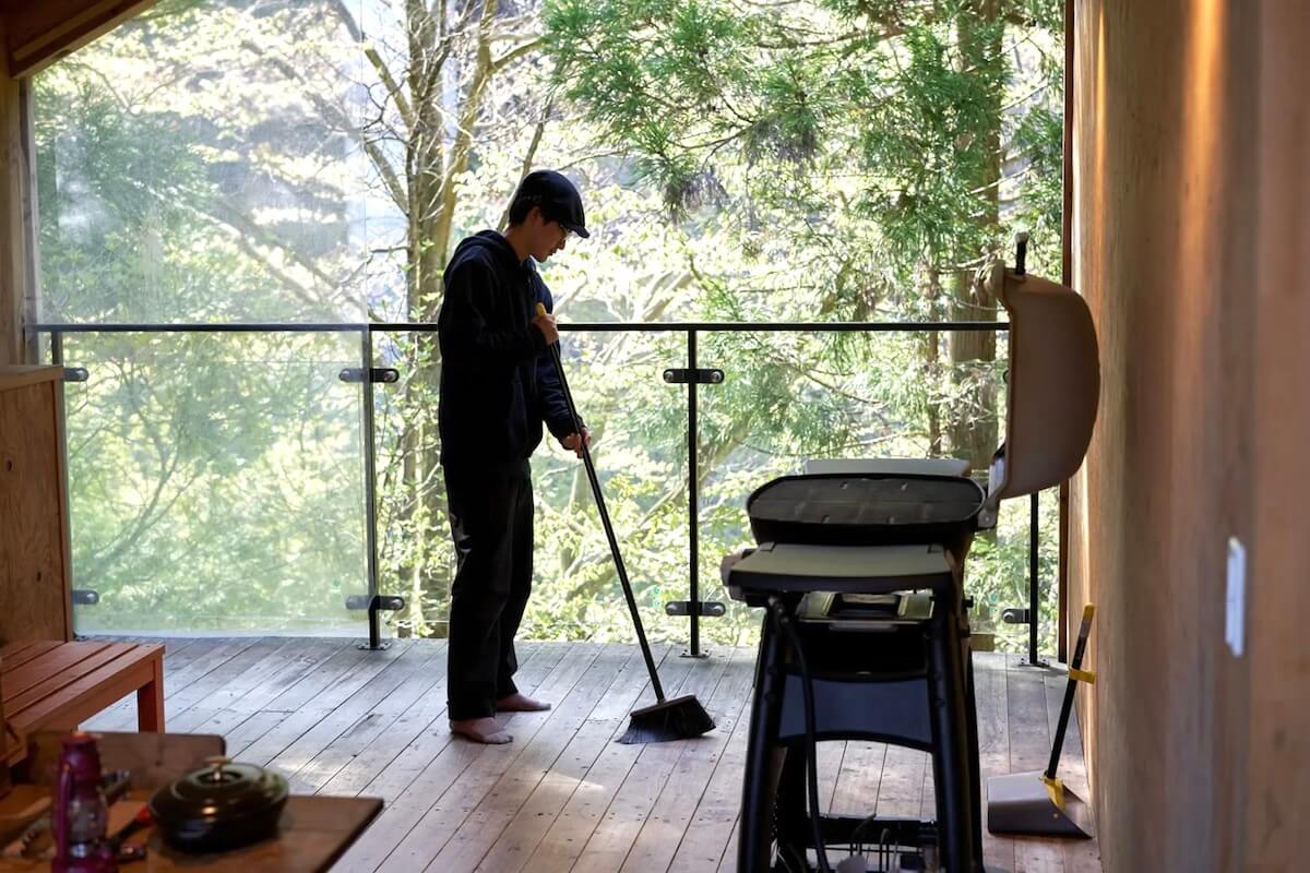 川に面したテラスでBBQをしたり、サウナ後の外気浴で整ったり。四万の大自然を満喫できる場所だ。