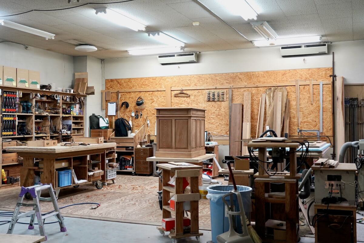 取材のあと、工房で製作中の家具を見せてもらえることに。
