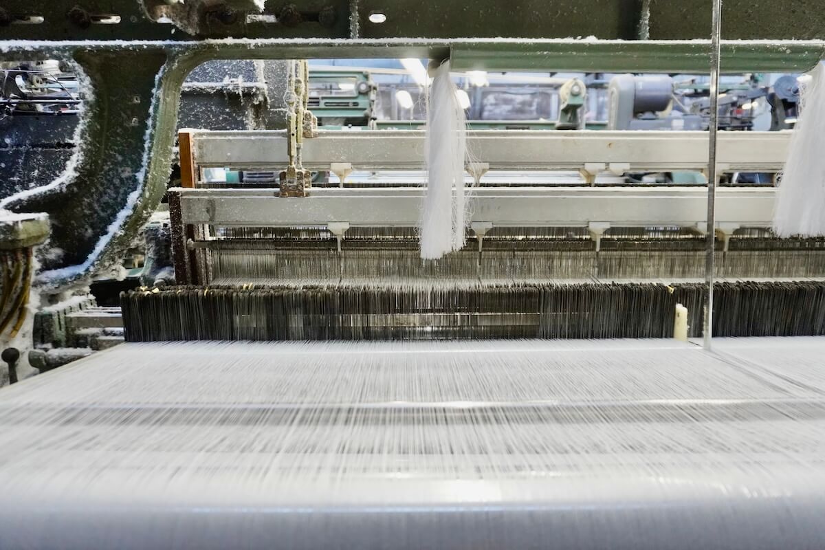 途中で糸が切れて織機が止まることがないよう、工場内を見回りながら糸を補充したり、絡みなどの不具合を未然に防いだり、糸が切れてしまった場合は補正をしたり。