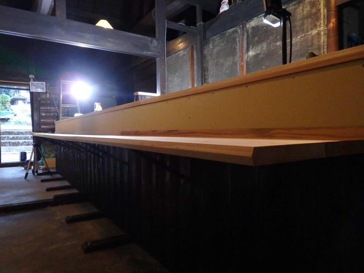 暗がりに明かりが灯る。庭にはいい風が抜けるようなり、これからお客さんが集ってくれるだろうカウンター席が配された。
