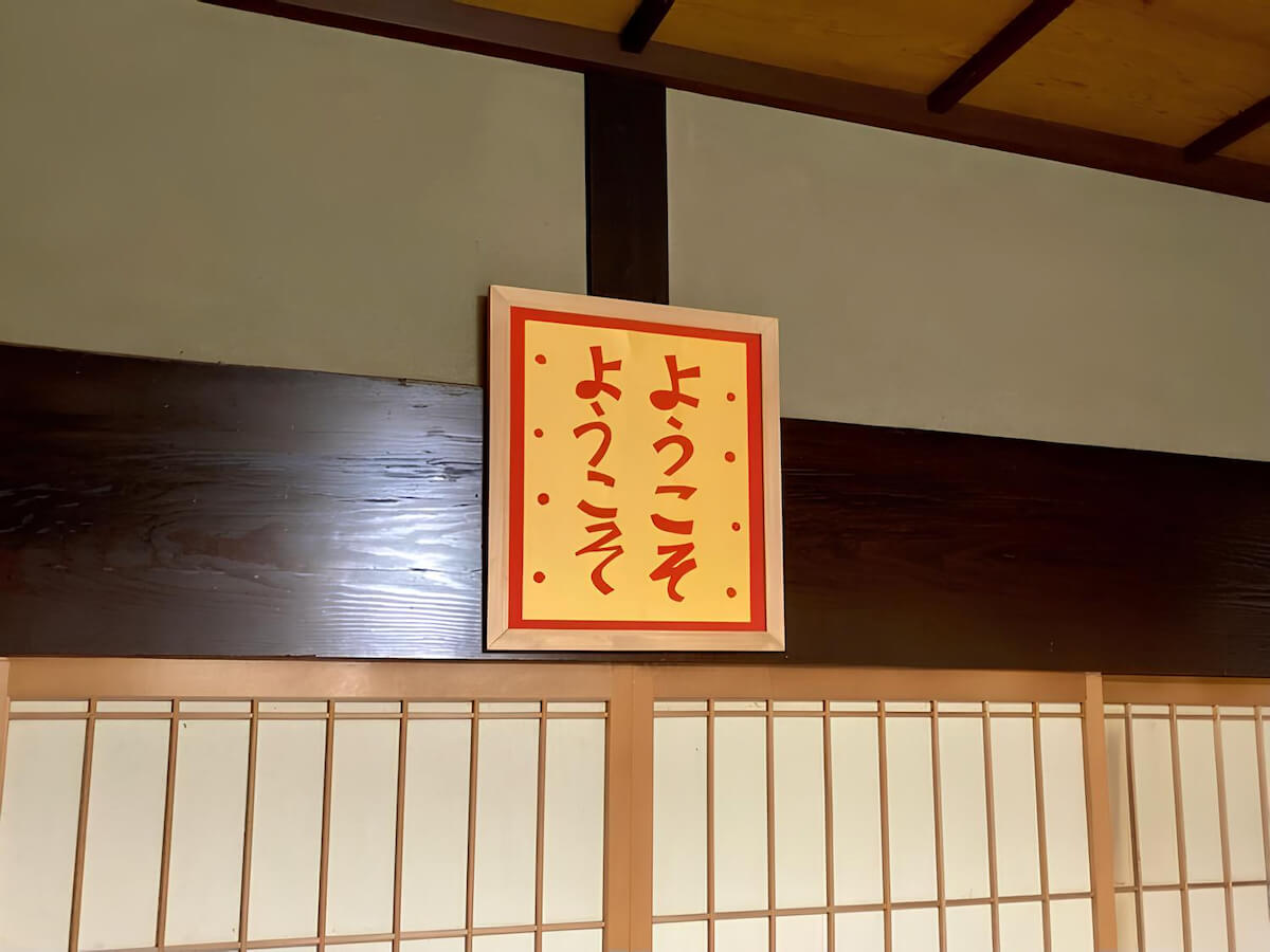 はじめに通された客間に掲げられていた、おじちゃん手製の額。ようこそが二言も書かれている。