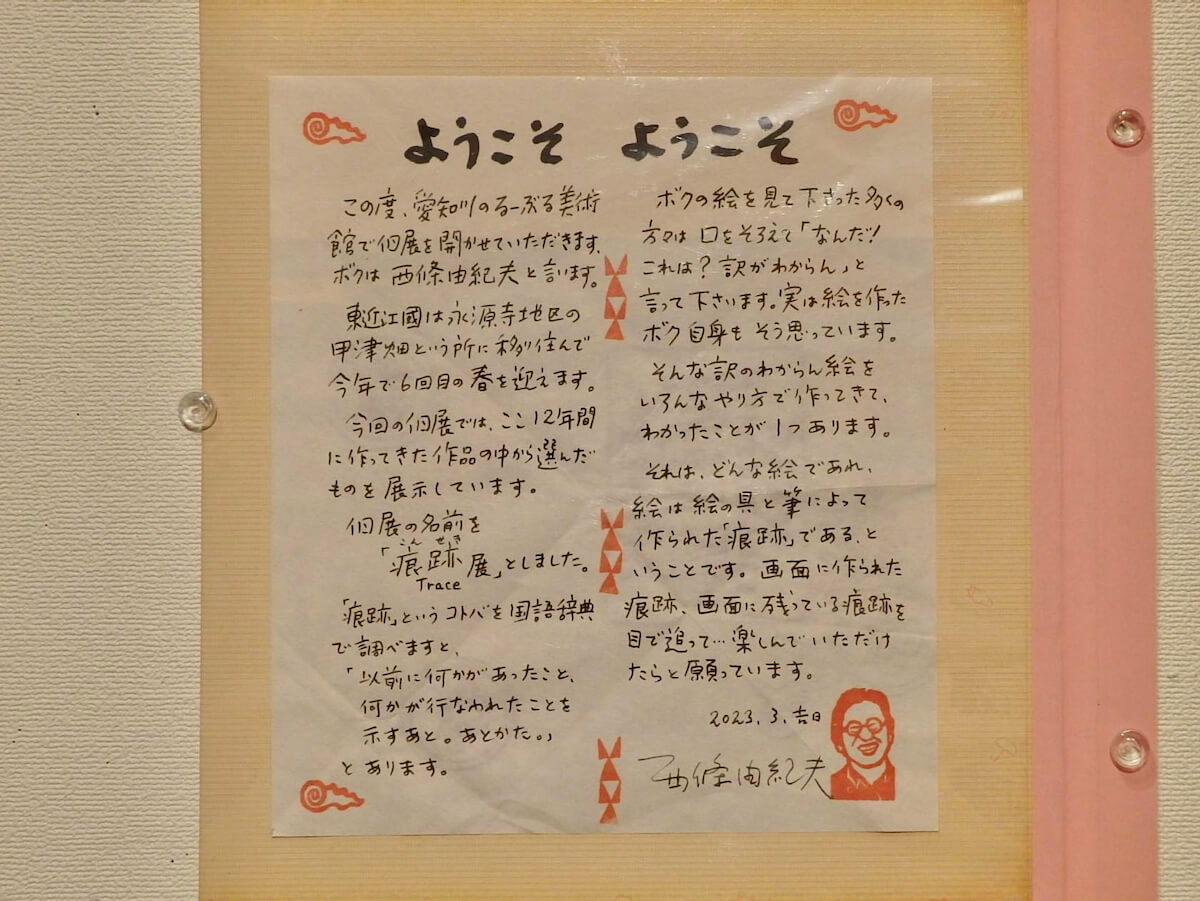 個展の名「痕跡」。過去の作品からピックアップしたものが展示されているとのこと。